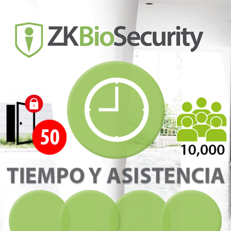 Software de Tiempo y Asistencia ZKBioSecurity V5000 (Licencia para agregar 50 Relojes) TyA ZKSoftware (ZKBS-TA-P50)