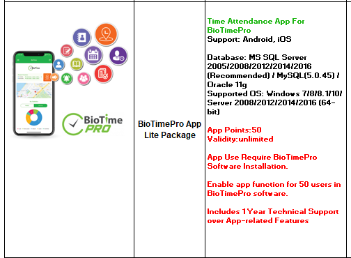 BioTimePro App (Permanente) 50P (BTP-A-50-P) (Necesita licencia base permanente)