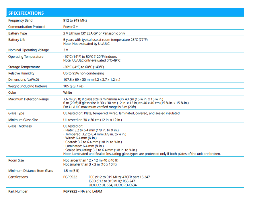 Sensor de Rotura de Vidrio Inalámbrico PowerG+ DSC (PGP9922)