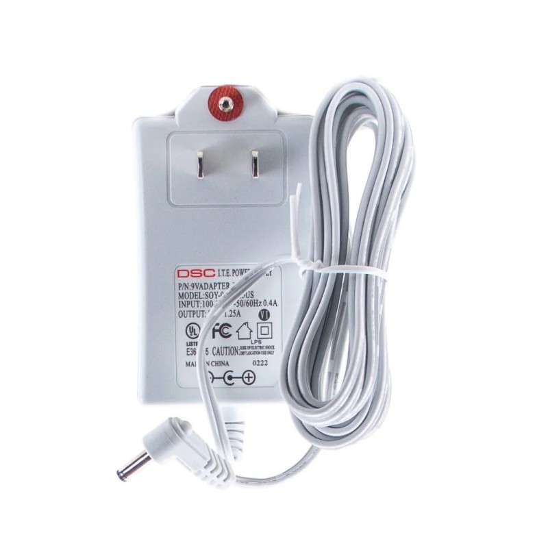 El DSC 9VADAPTER-US es el adaptador de corriente 9VDC, 1,25 A diseñado para su uso con varios teclados DSC. El transformador funciona con los teclados DSC WTK5504, DSC WS9LCDWF9 y DSC HS2LCDWF9.