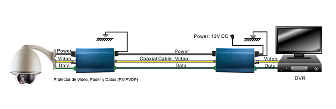 Protector de Video, Poder y Datos (PX-PVDP), accesorio indispensable cuando se instalan PTZ, pues protege dicho equipo, en 3 diferentes fuentes de posible daño electrico.