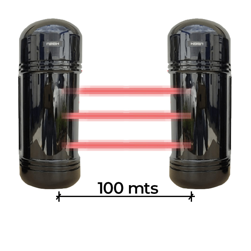 Este detector infrarrojo de iHorn modelo ABE100 activo consta de tres haz de luz, construidos con tecnología inteligente, con una sensibilidad ajustable de 50 a 250 m/s, puede ser adaptable para diferentes entornos.